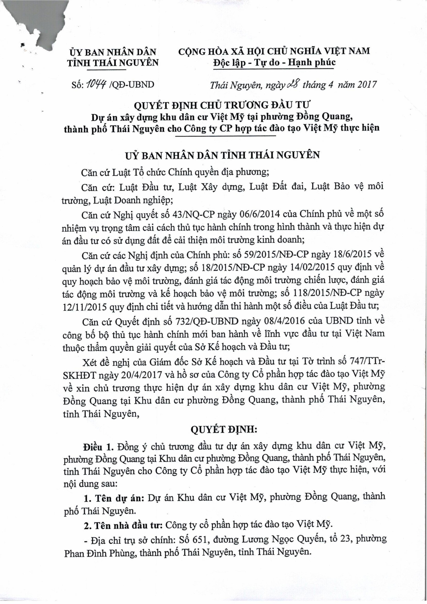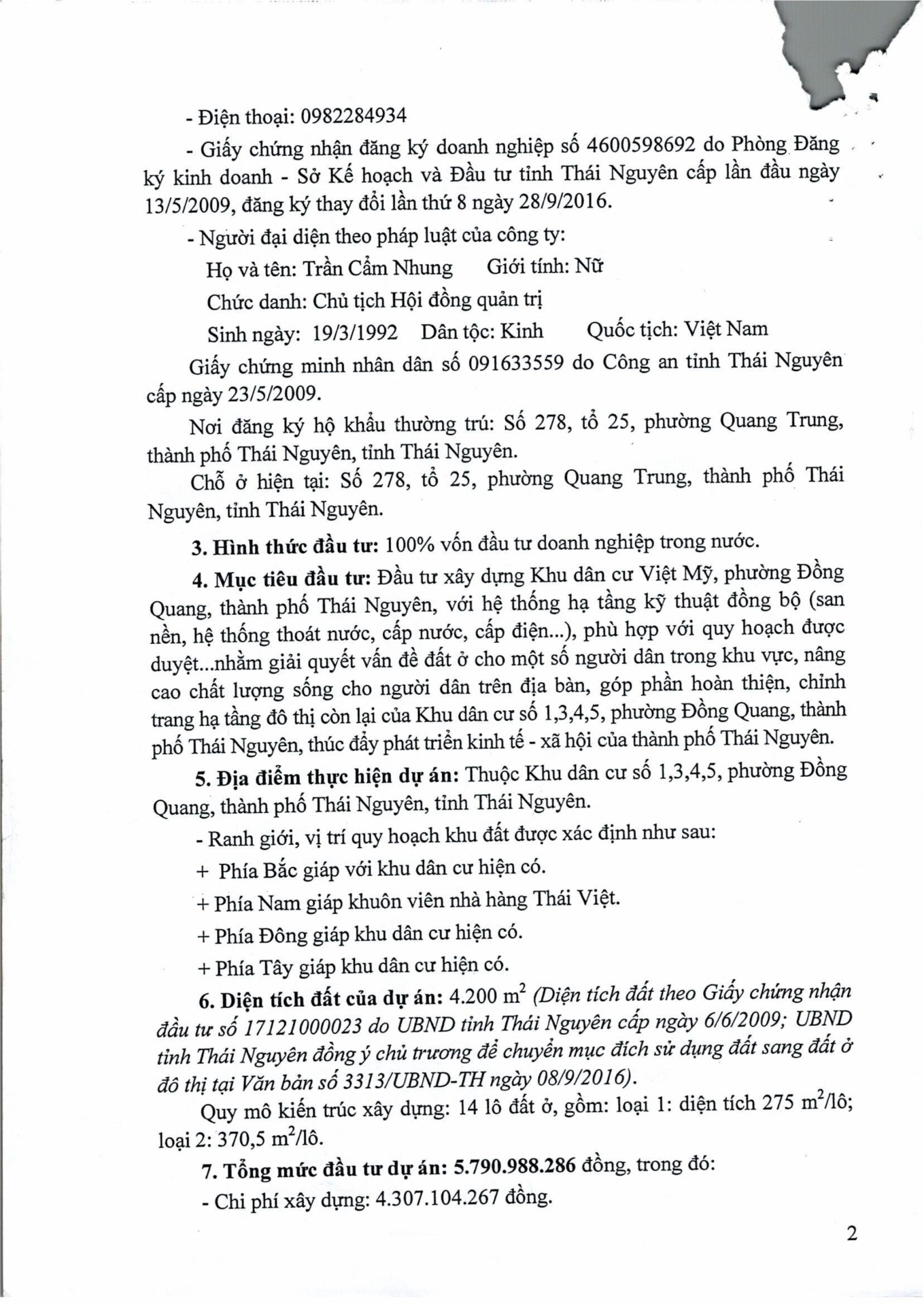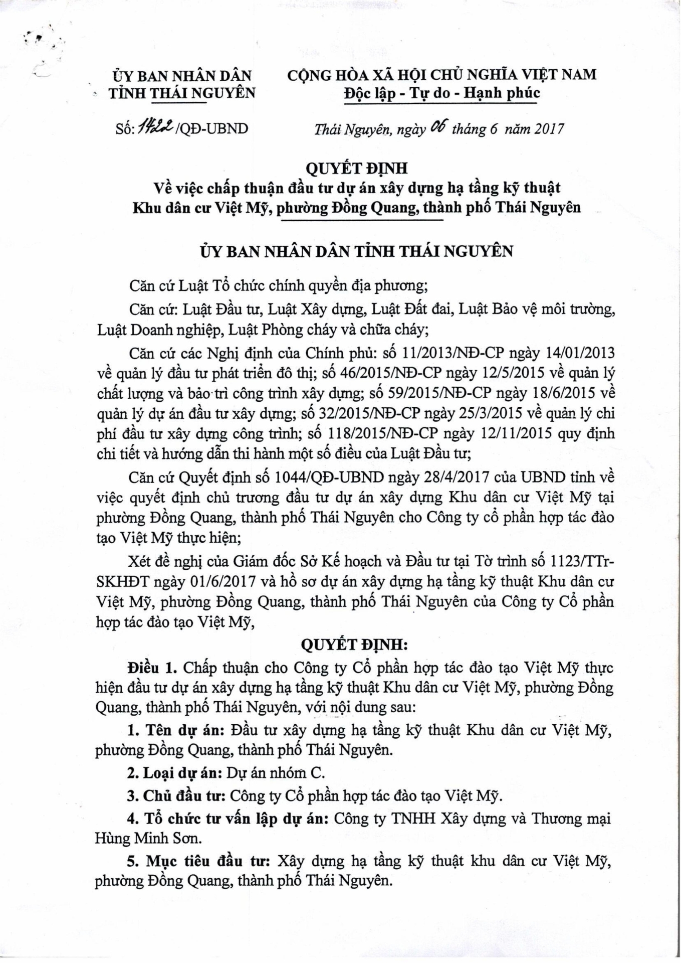 Dự án xây dựng hạ tầng kỹ thuật Khu dân cư Việt Mỹ, Phường Đồng Quang, Thành Phố Thái Nguyên Chia sẻ: